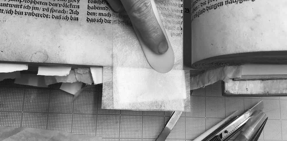 I entered this field because I became fascinated by the sophisticated technology of the codex structure, and I strive to preserve all evidence of how a book was made, where it was made, and so on – evidence that can be obscured or removed by rebinding. There is still much to learn about the materials and techniques of historic bindings – which add context to the content – so we should preserve their essential nature by concentrating on minimally invasive treatments. A treatment should should stabilize the book, allowing it functionality without causing further damage. It should alter the aesthetic qualities as little as possible. The intrinsic aspects of books and paper artifacts — their physical construction, material content, aesthetics, and tactile qualities — are unique and irreplaceable. These are the aspects I preserve for future generations. Contact me to begin a treatment!
