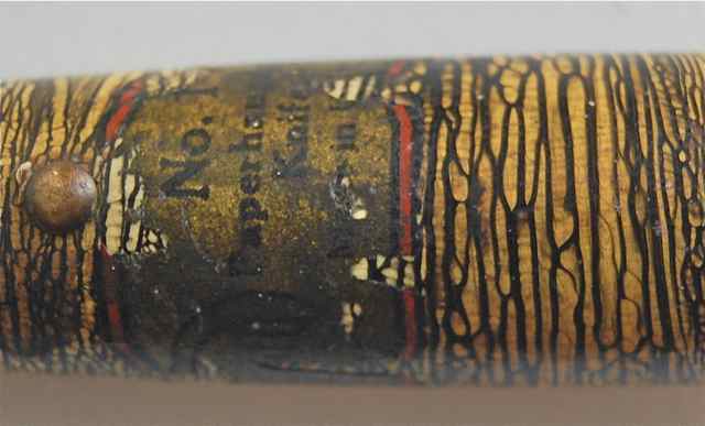 I recently acquired this Knife. It is 18 cm long, and the faded label appears to read “RIDGEL”, then “No. 1 Paperhangers Knife/ Made in U.S.A.” The paint decorating the handle is quite spectacular, I’m guessing it is an oil based paint, but am unclear how this complex, tiny pattern was formed – the black paint appears to have been spun or dripped onto a turning handle? Any information is appreciated.
