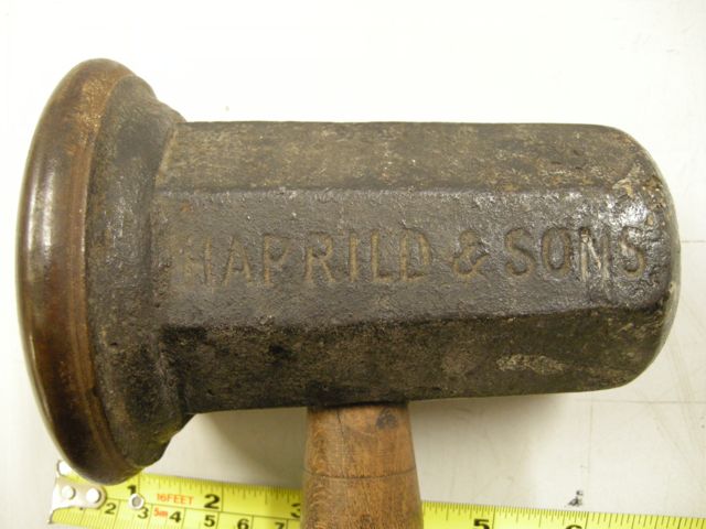 I haven’t seen a Hoole hammer or an image of one. The American Bookbinders’ Museum hammer is not a Hickok and is unsigned. is a bit smaller than Anne Kahle’s Hickok hammer, if I remember correctly, has two strongly curved faces, and has a barrel-like body with the two faces larger in diameter than the largest diameter of the body. It is in bad condition to the point of unusability, with both faces chipped and broken around the rims. I believe it shares a provenance with two of your hammers.