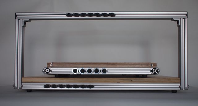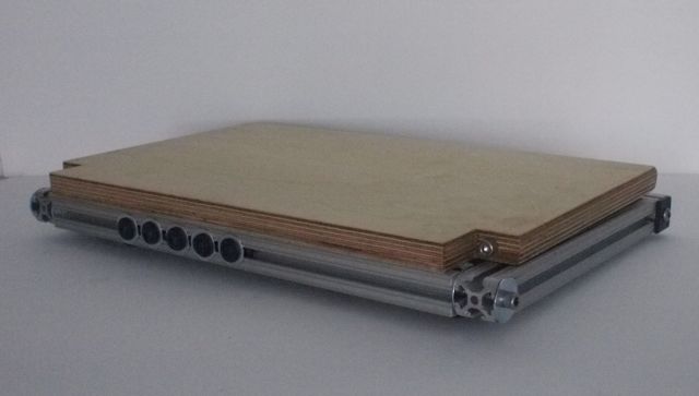 A major, Ā inherent problem with all previous sewing frames is that they are awkward to store when not in use;Ā often they are placed on a high shelf, difficult to access and exposed to excessive heat and dust, or have to be disassembled, which is also a pain. Ā I suspect these inconveniences sometimes keep them from being used. Ā I often found sewing keys difficult. Ā I borrowed the t-slot idea from Hickock, supports that attach to the front of the base from Powell, added advantage of folding uprights solidly constructed out of aluminum, and The Nokey Sewing Frame was born.