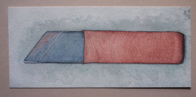 Jennifer Evers, MSIS Candidate, CAS in Conservation of Library and Archival Materials (UT Austin, Spring 2011) painted and gave me this lovely watercolor of her English style A2 paring knife. Nice job! Thanks!
