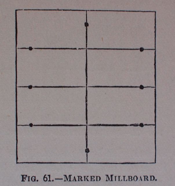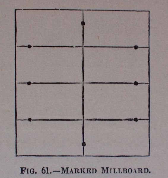 Fig. 5. Crane’s illustration of how to lay out mill board for cutting with the millboard shears. This is very similar to how French boards were cut 100 years earlier.
