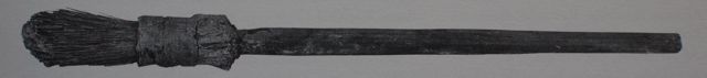 Just an old brush, which looks pretty similar to the string bound paste brushes that bookbinders and conservators use.  How many of us would even give it a second thought– passing over it at a flea market, or when cleaning out our own stash toss it?  But this brush can be located and dated to the Mason House, Guilford, Virginia from about 1730.  And according to Gaynor and Hagedorn, it is the only known surviving pre-1800 American brush.