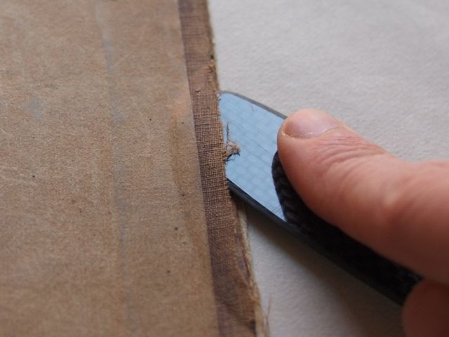 The carbon fiber lifter is a new tool to aid a conservator when mechanically lifting covering material, pastedowns and general delaminating. Lifting knives, teflon tools, micro spatulas, teflon coated tools, and bamboo hera all have their place in a conservator’s arsenal. The carbon fiber lifter is between a teflon folder and bamboo in feel: much thinner and more rigid than teflon, stronger than bamboo and it slides easier. Very strong and flexible, though not indestructable. Great for paper, weak cloth, heavily embossed cloth, and lumpy, uneven boards. It is flexible, yet provides unparalleled control even when it is in deep. It is designed to slide between and separate adhered materials, but the blade is not really strong enough to split a board, like a knife can do. The carbon fiber lifter is designed for sliding and prying lifting techniques. I’ve also found it useful for reversing previous “repairs” like gluing a cloth case spine to the text block, given its thinness and long length. The cutting edge is rounded and extends about 2.5 inches (63 mm.) The edge can be easily sanded to alter or repair the bevel, but I strongly recommend respiratory protection and gloves. Here is the Material Safety Data Sheet MSDS. Additionally, the carbon fiber looks very cool. Materials: Woven carbon fiber embedded in epoxy.
