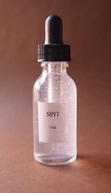 One substance that is rarely mentioned in treatment reports is saliva. It’s remarkable enzymatic efficiency is likely as close to a universal solvent as can ever be devised. But some conservators are reluctant, and others embarrassed, to produce adequate quantities for larger projects, especially if the director of the library or museum can walk into the conservation lab at any moment. So I’m quite proud to offer this primo secretion. This is the good stuff: pure, clean, viscus, and strong. Contains an exceptionally high concentration of ptyalin; a little goes a looong way. I’ve even managed to reverse PVAc with it! An exceptional expectorate. Limited supply—even with the anticipation of a dinner at Per Se, I can only make about 2.5 oz. a day. Do not confuse SPIT™ with second rate dribble, drool or slobber.