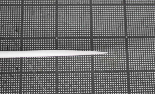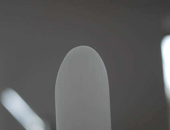 Top of Delrin lifting tool. The tip is sharp for about an inch on each side. The rest of the tool edges are rounded for a comfortable grip..