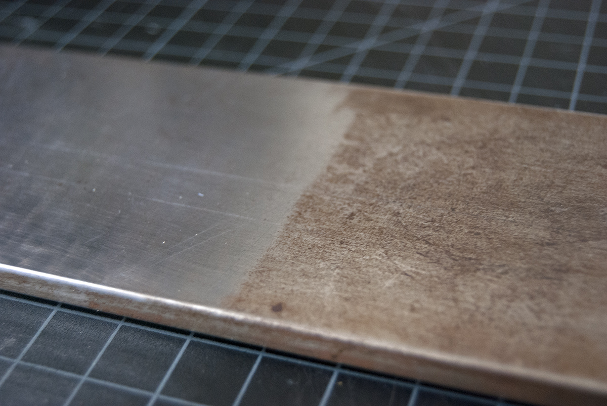 When cleaning a straight edge, I used one of the larger strips; the in process shot shows its effectiveness. The electric erasers can leave a pattern on the surface due to variable reflectiveness, but that is easily removed with a quick polish with something like Mother’s Mag and Aluminum Polish.
