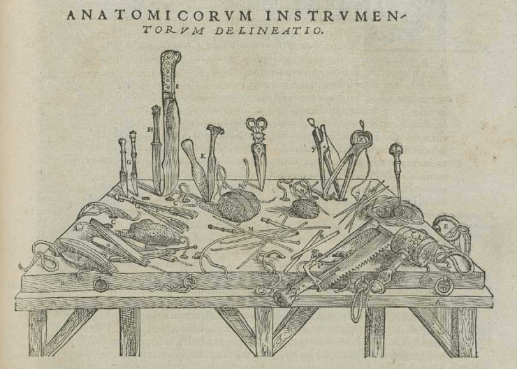 Vesalius, Sixteenth Century German Bookbinding Thread and Dissection Tools