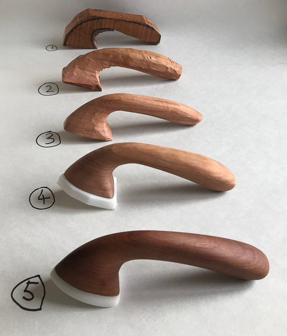 - Smooth the axe work with a spokeshave and define the inner curve with a half-round rasp.