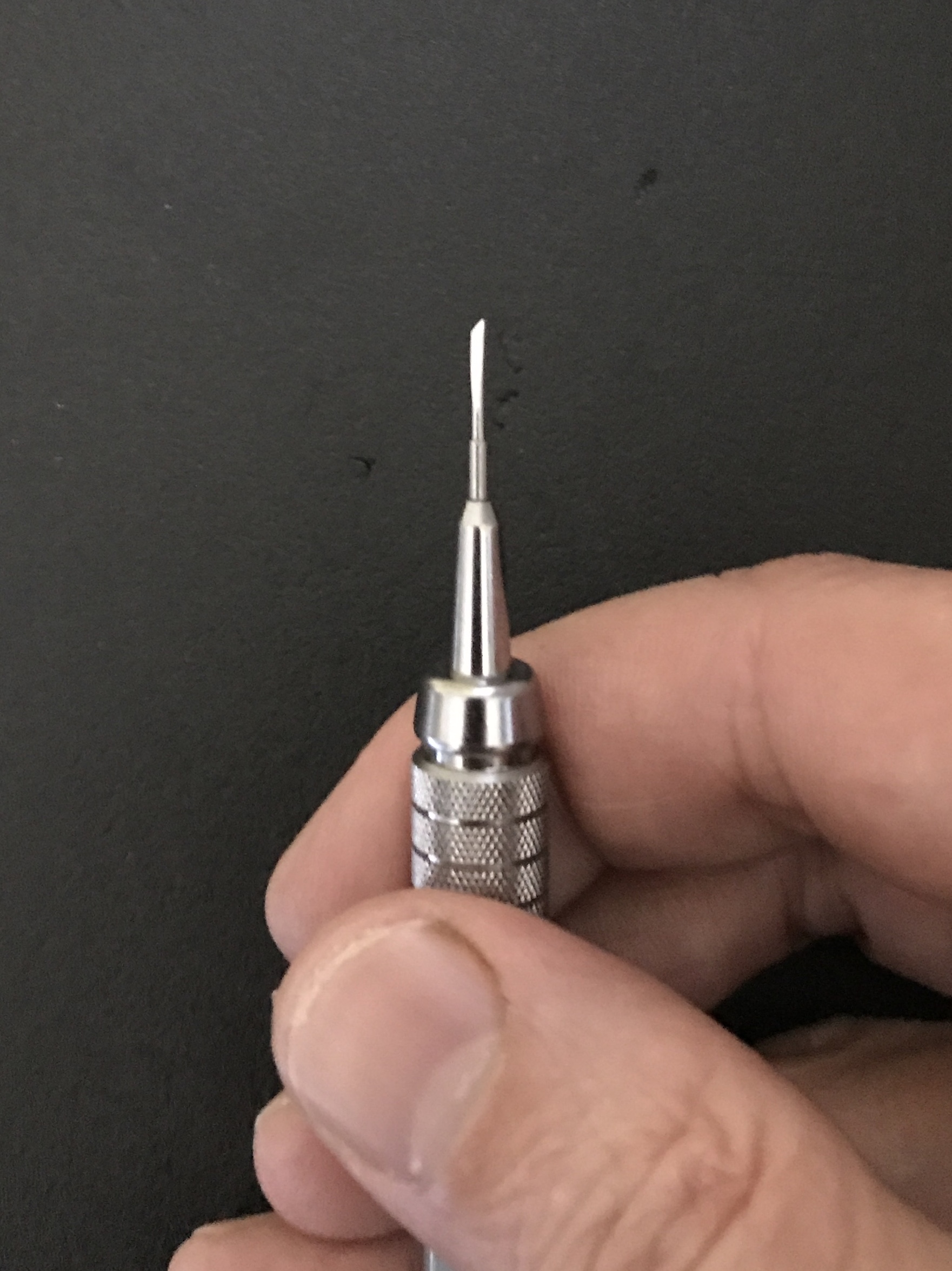 My newest tool, a M2 micro knife blade that fits into a .9mm mechanical pencil. Excellent for fills and delicate miniature work. Coming soon at Peacheytools.com