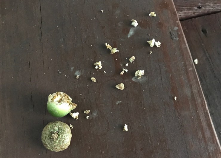 Many animals use tools like this, for example the chipmunk that used the wood stairs below to break open an acorn. The tool or piece of equipment? A workbench.