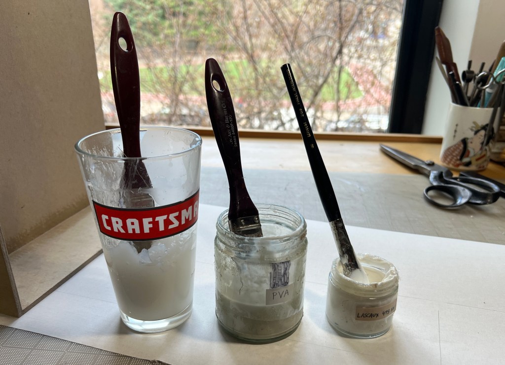 • Paste, Lascaux, and PVA all use separate brushes and are kept in separate containers.