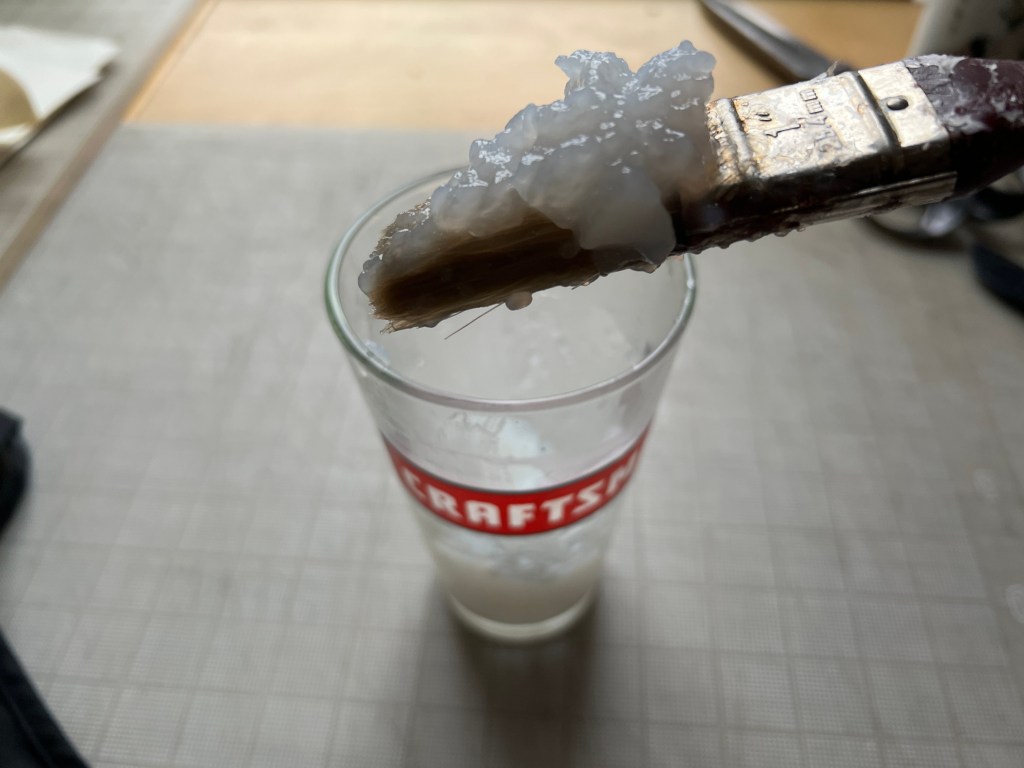 Fig. 2. Thick Aytex P wheat starch paste. For this purpose, straining is not necessary, the lumps get smoothed out on when pasting out. Or you can use your fingers. This is the way bookbinders traditionally used flour paste. Paper conservators, please don’t freak out.
