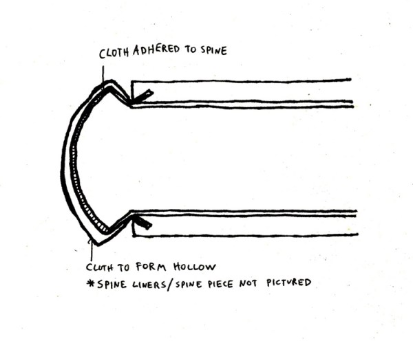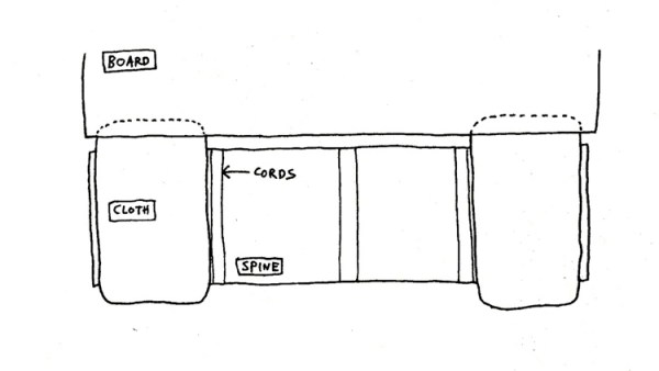 -The folded cloth can be inserted into one board, then the inner cloth adhered to the spine, then both layers glued together to insert into the opposite board, like the Clarkson method