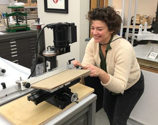 This machine is less intimidating when compared to the original. The orientation makes it easier to sight the height of the blade. The carriage can be quickly pulled back into starting position after the end of a previous cut. This also makes partial (or biscut) slotting of a board very fast and easy. Overall, the slotting operation seems to be quicker. Many bookbinding and conservation students, such as those from North Bennett Street School, have been trained in the fundamentals of board slotting. A one to three day workshop on machine operation, basic slotting technique and structures is recommended, though.