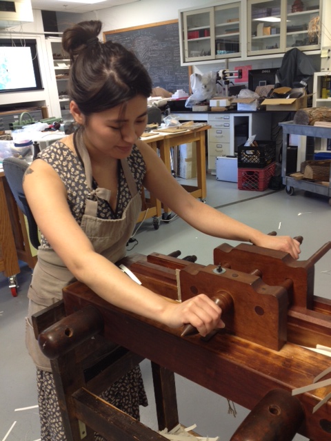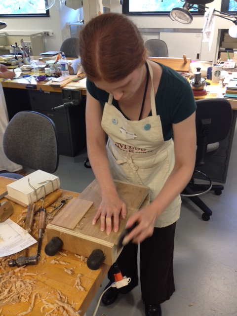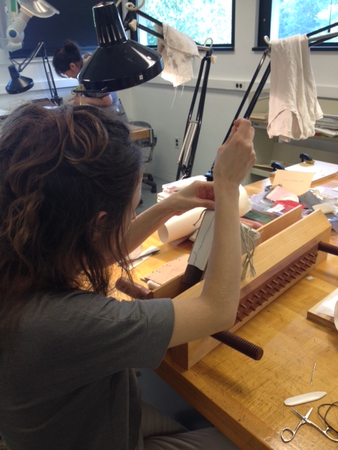 The skull and beating hammer literally and symbolically bookend this workshop: we were working with the head and the hand, using theory and praxis, to learn more about the nature of 18th c. French binding.