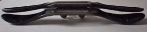 French style knives are very popular with fine binders, many of whom were French trained. Both French and Swiss style knives have a round cutting edge, and the Swiss knife is usually a piece of steel without a handle One defining stylistic feature is a center mounted wood handle, however. The handle on the French knives has always puzzled me, since you tend to hold it more on the blade and rest your palm on the handle. The handle protrudes onto the leather, limiting the angle the knife can be held. To get lower paring angle, I was the first to introduce the top mounted wood handle.