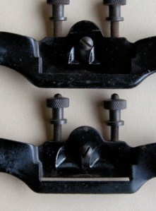 A modified 151 style spokeshave is a powerful and effective tool for making long, gradual bevels in leather; ideal for rebacking or an English style full leather binding. It can also be used to bevel binders board. It is a lot of fun to use. These were originally intended for woodworkers, and I think binders started to modify these for leather starting in the 1920’s. Here is some of my research, and a tentative type study of 151 style spokeshaves.