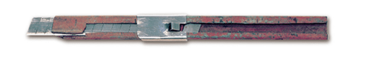 The image above is one of the earliest extant Olfa knives. The genius of the snap-off blade design is that the breaking score line does not extend into the blade bevel, so that when it breaks it naturally forms a sharp cutting tip. The Olfa Silver is a direct decedent of this early handle design. The blade lock was not yet invented, nor the blade breaking end piece. Yet it is a clever piece of bent sheet metal engineering.