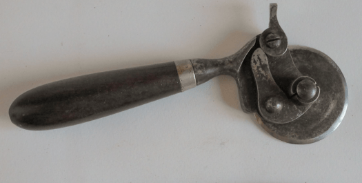 Of course, everything has antecedents. I have a rotary wallpaper knife in my collection from the early 20th century, though I think it is used with the blade locked and not rolling. It is unmarked and not patented, beautifully made and the entire knife balances precisely on one finger. Rolling cigar cutters, pizza cutters, pie crimpers all have a similar morphology and predate the rolling Olfa.