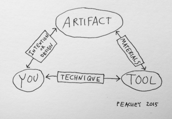 I also wanted to test out some longstanding questions; primarily, as where does technique reside? Traditionally Western craft technique is taught by close contact and imitation of a skilled practitioner. Now it is common to learn by reading a how-to-manual, watching a video, or maybe taking some classes. Technique is often regarded as solely residing in the practicioner.