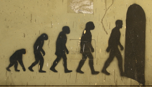 Another take on the ascent of man, pictured below, was found last month while in Istanbul, Turkey. A similar message, but a bit more ambiguous. Is the man’s final step through a black door? Is it into a grave? Or is it a representation of an unknown future that we are carried into by our feet, since we are walking upright? It reminds me of the monolith in Kubrick’s movie, 2001.
