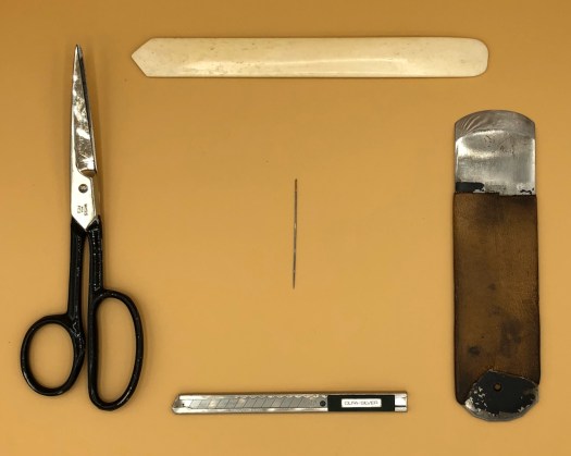 I have a confession. In my article in SM9, I also show an image of a lifted pastedown and removed leather on one of my own books in 2014. In retrospect, it really wasn’t necessary, but it was interesting to see that the slips were not deplyed or frayed, and that the inner face of the board squares were colored with vermillion. I think I just wanted a cool looking photo. You might say I wasn’t thoughtful enough. And at least the way I did it, it is not close to 100% reversible; which may be the case for many other people’s deconstructions as well. At this point I would rather have it intact, but like many projects I doubt I will have time to get back to replacing it.