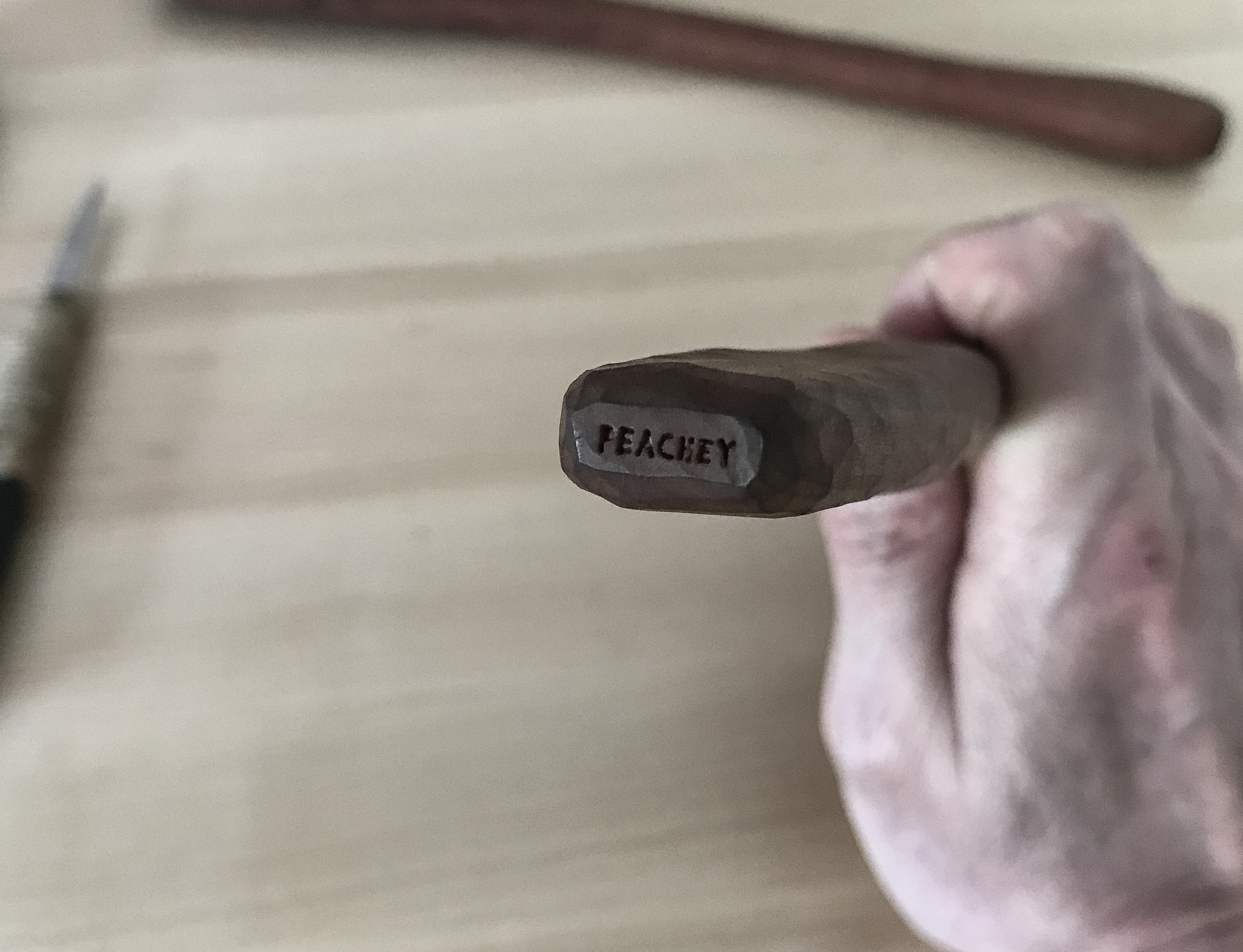 I imagine them gradually being shaped to the hands that used them over a long period of time. None of them seem to have any extra finish applied, so they feel like natural wood and oil from the hands. The shapes of the handles are all different, and likely the most individual choice.