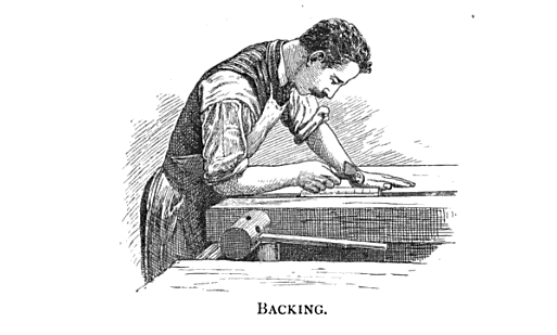 Notably, some of the steps are described as a generic action — “backing” — while some have the specific names for positions — “collater, cutter-out and coverer”. Small clues like this can help to understand the divisions of labor in Zaehnsdorf’s large nineteenth century bindery.