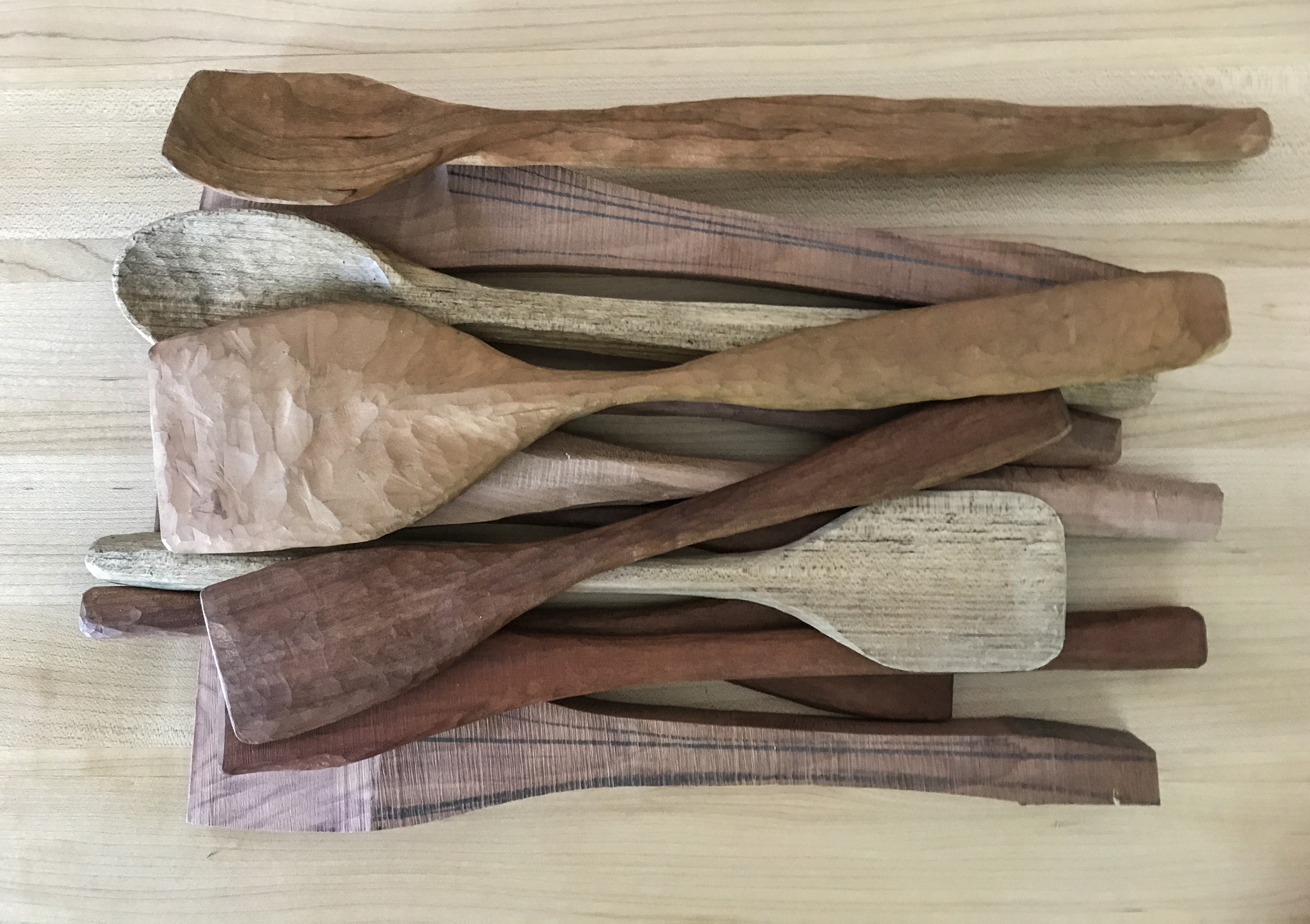 When monetizing craft, there are continual pressures to simplify production, increase output, or raise the price in order to keep up or outpace the cost of living to profit. Continuing education and research into materials and techniques is a way to accomplish this. With conservation and knives, I keep up on new techniques, philosophic approaches, and materials. With spoons, my primary interest is the process of making them: whittling, shaping, and carving. The history of them and what other people are doing is interesting, but doesn’t influence me all that much.