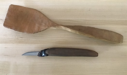 It may seem odd for someone who conserves and makes things for a living to have a hobby. Mine is making wooden spoons and paddles. After all, isn’t this pretty much the same activity as my job? Both involve similar craft skills: working precisely, measuring, knowing material properties, and hand tool use. Two years ago, I wrote a piece on the beginning (and temporary ending!) of my spoon carving hobby. More recently, I started to think about how spoon making as a hobby is different from knife making or bookbinding as a business.