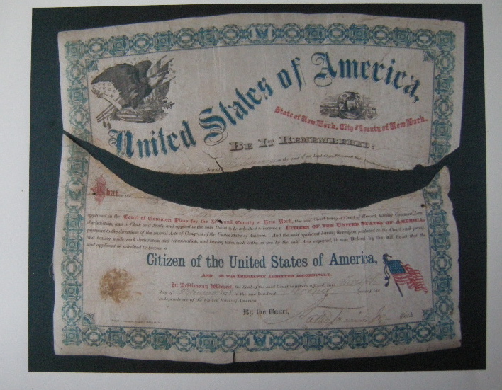 The next step was to mat the document, hiding the threads, then it was framed, care being taken to add spacers so the threads were allowed to move.